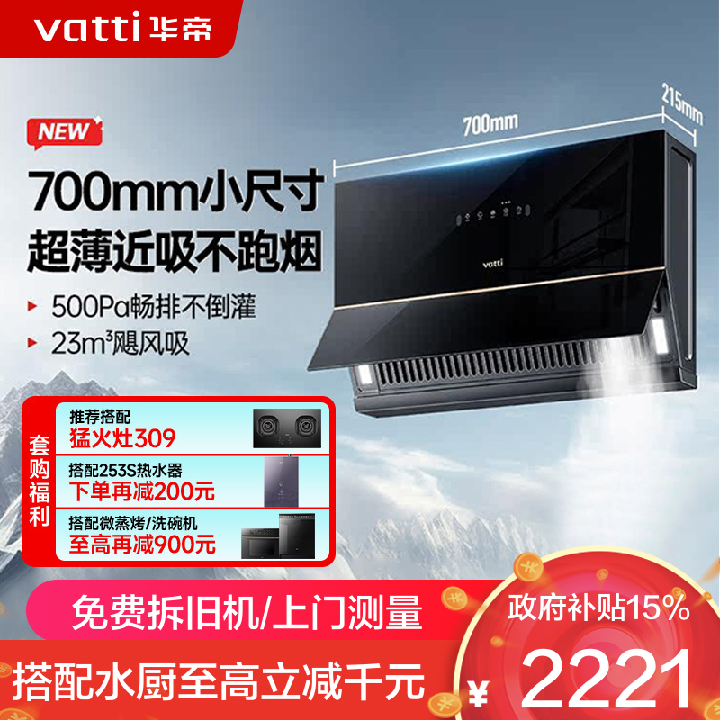 华帝(vatti)官方[小飞翼]油烟机 K7变频顶侧双吸 脱排吸油烟机 7字型降噪 家用25风量 大吸力i11237