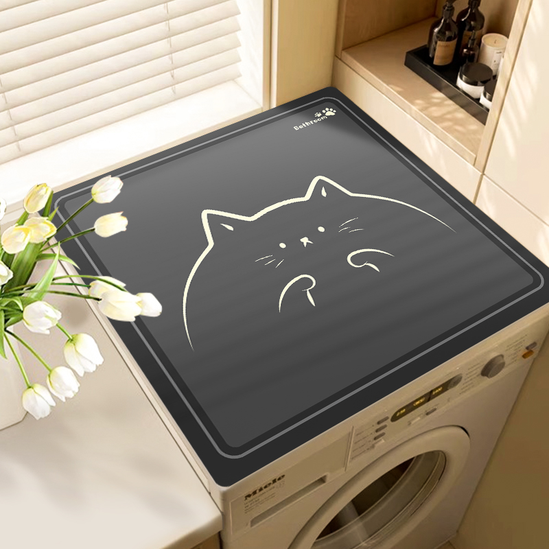 滚筒洗衣机防尘罩盖垫家用冰箱盖布盖巾硅藻泥吸水防滑防晒垫子 萌萌猫 适用洗衣机55*60cm无甲醛安全环保