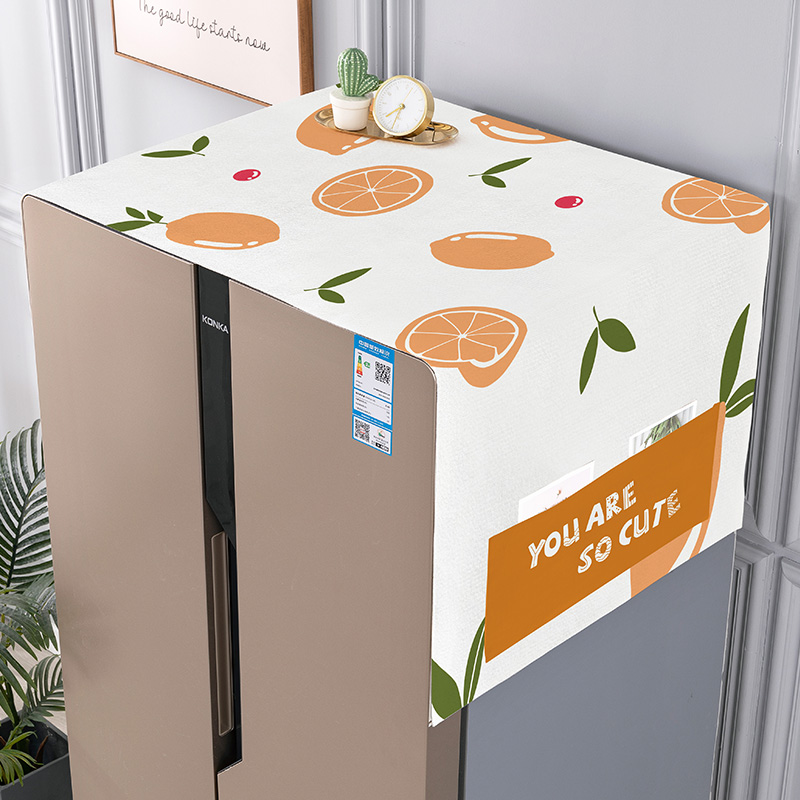 冰箱顶盖布防尘罩简约单双开门可收纳防灰尘盖巾家用高档洗衣机罩 橙意满满-升级防水/口袋收纳 35*100cm微波炉/烤箱通用