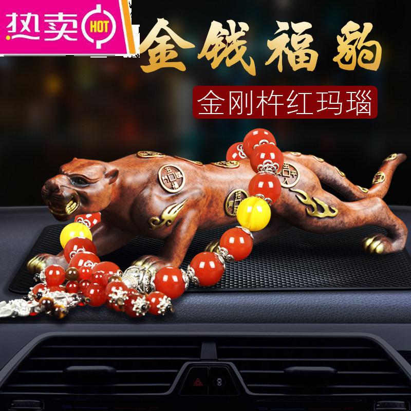 金钱豹汽车摆件2021新款高级男士纯铜豹子车载大气中控台车内饰品_769 纯铜金钱豹-冰裂棕+金刚杵红玛瑙佛珠(推荐)