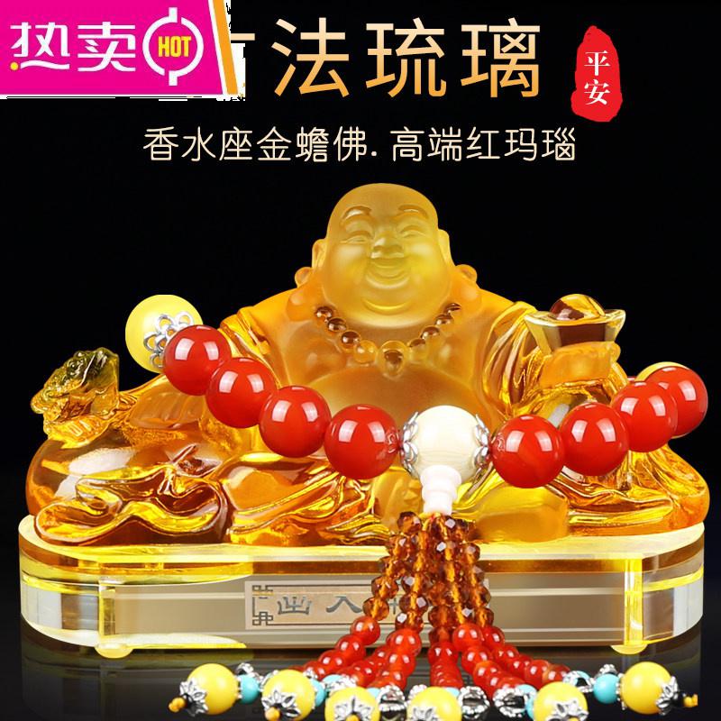 汽车香水摆件弥勒佛装饰保中控台平安车载创意佛车内饰品车上男士_280 金蟾佛琉璃香水座+高档红玛瑙佛珠
