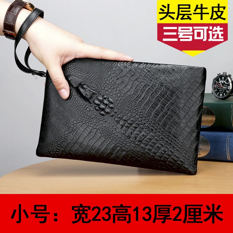 头层牛皮男士手包纹手拿包男包真皮休闲信封包手抓包牛皮钱包_897 鳄鱼头纹【真皮】中号