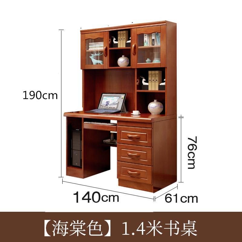 青木川 实木书桌带书架书柜一体卧室书房房间家用小户型0.8米1.4米办公桌电脑桌台式中学生学习写字桌书画桌简约现代 海棠色【140x60x190cm】