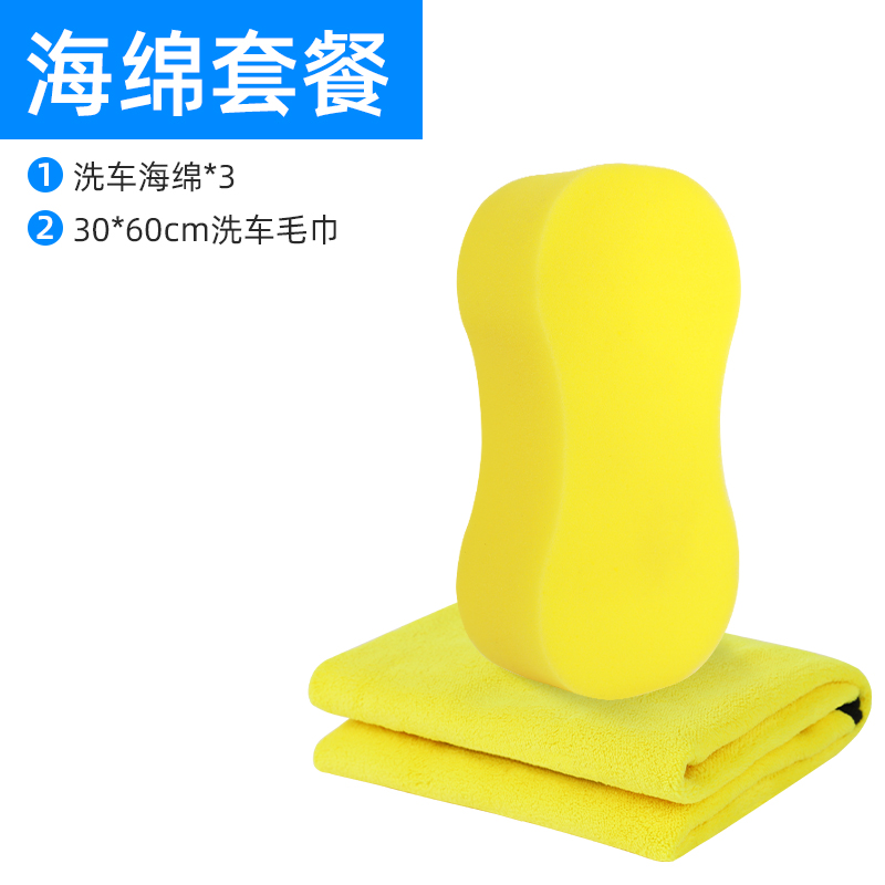大块洗车海绵块特大号8字型多功能吸水高密度发泡擦车清洁灰尘 洗车海绵*3+洗车毛巾30*60