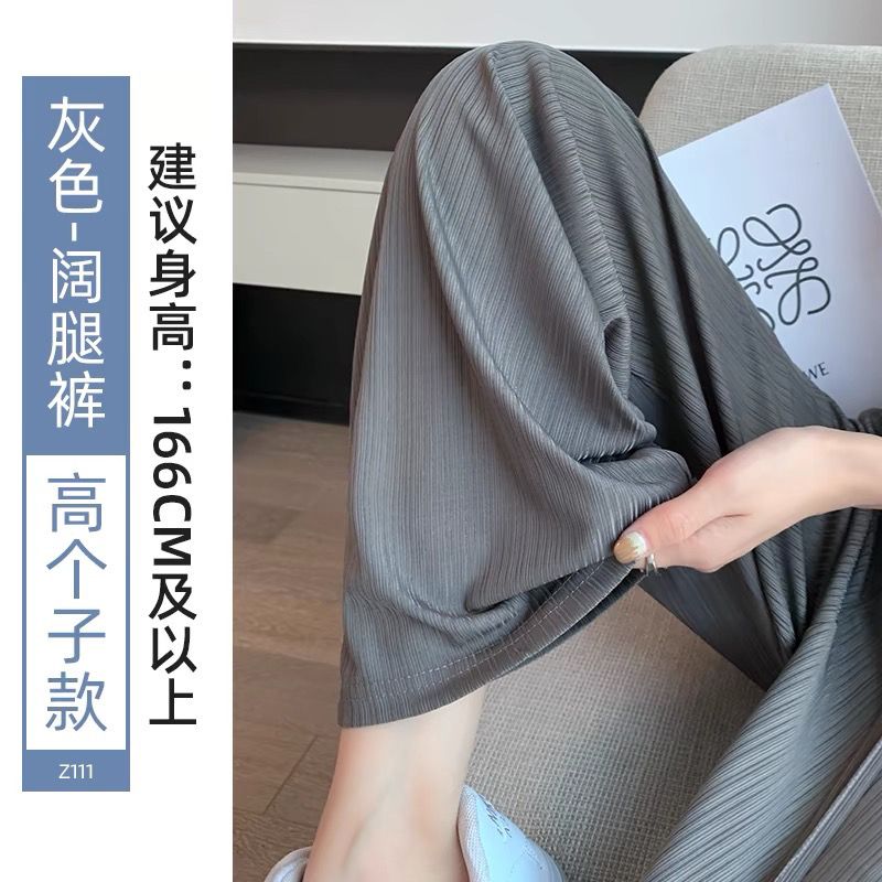 冰丝阔腿裤女夏季薄款2024新款防蚊直筒休闲小个子凉凉抖抖裤 XL建议【125-135斤】 灰色【加长款】夏季