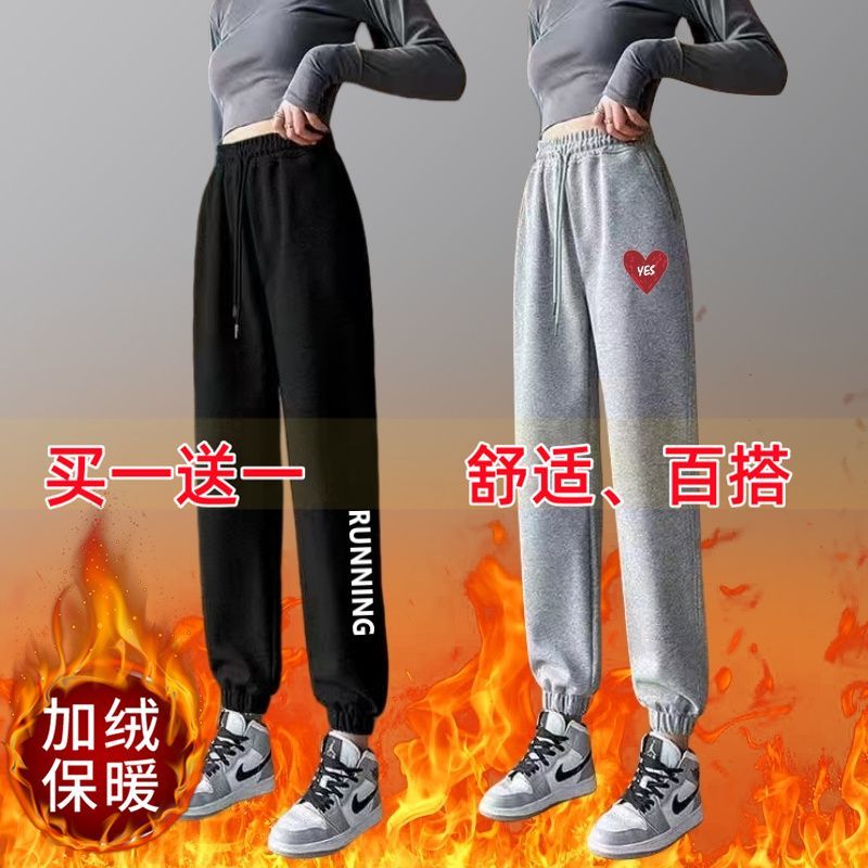 ins黑色运动裤女春秋宽松显瘦束脚裤冬高腰百搭休闲裤子一一_583 2XL120-130斤 RUN黑+爱心灰【加绒-2条】