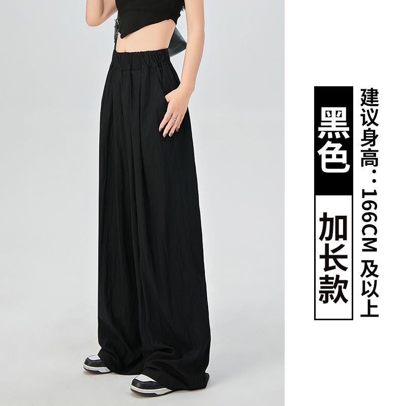 褶皱裤女垂感高腰2024宽松裤子直筒休闲夏季薄款慵懒拖地裤 M体重【101-115斤】 黑色【加长款】身高163CM以上