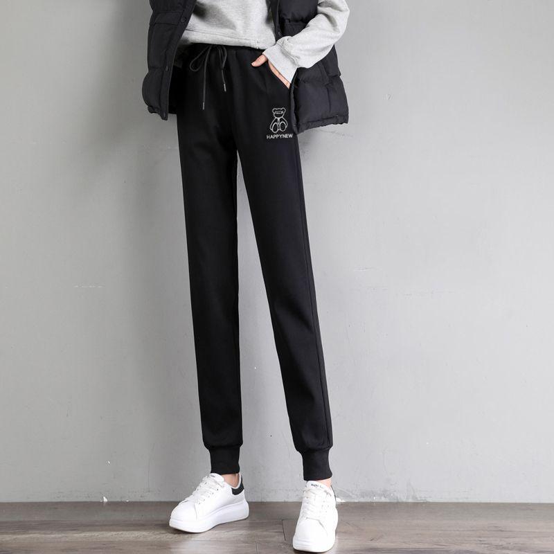 高个子运动裤女加长版175裤子170cm高腰显瘦哈伦宽松束脚180卫裤_214 XL体重120-135斤 黑色春秋小熊(小个子)不加绒