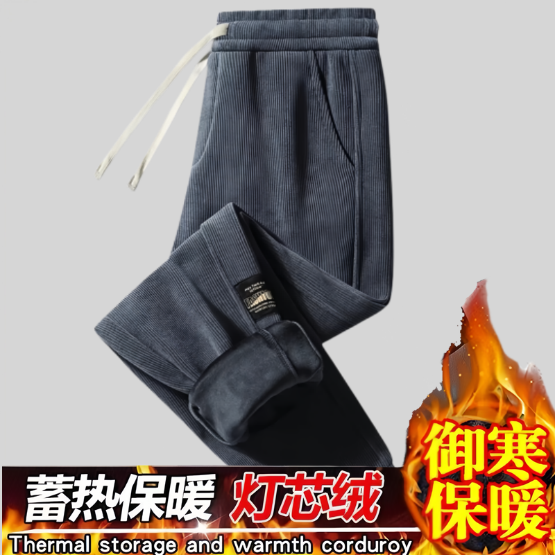 加绒灯芯绒加厚休闲男裤卫裤宽松裤子束脚男士潮流休闲裤秋冬长裤 L【100-120斤】 ZYK31【加绒加厚】灰色
