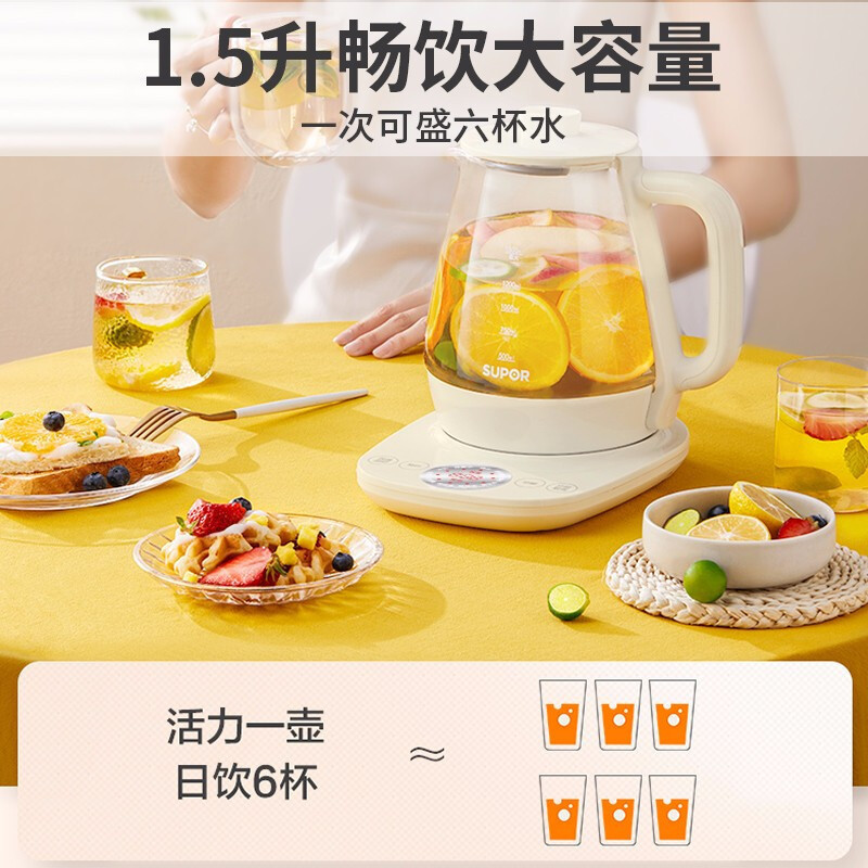苏泊尔(SUPOR)养生壶多功能1.5L智能家用全自动按键式电热烧水壶高硼硅玻璃花茶养生壶SW-15YJ33B/C
