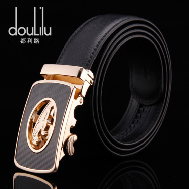 新款都利路二层牛皮自动扣皮带男士真皮腰带休闲商务牛皮腰带男皮具套装 男 R381金-黑 长:115CM