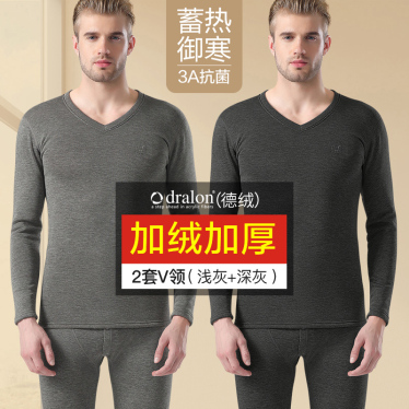 恒源祥保暖内衣男士加厚加绒德发热中老年人秋衣裤秋裤套装秋冬季 德绒加厚V领深灰+浅灰 180 2XL加绒加厚德国发热纤维