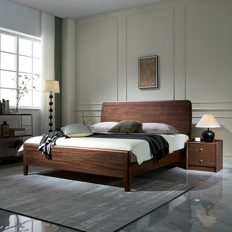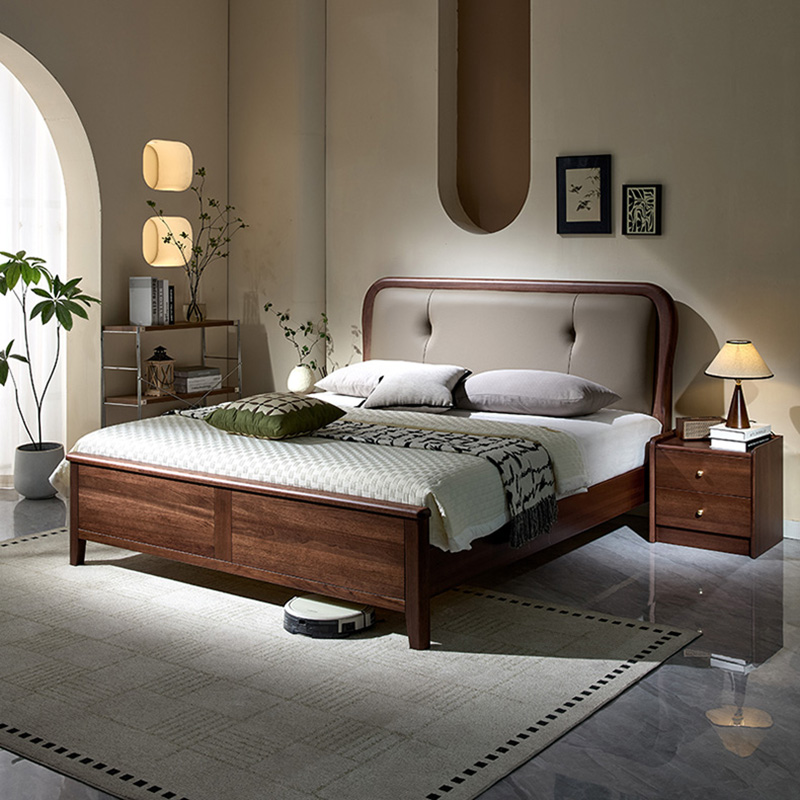 青木川 简约现代南美黑胡桃木全实木床1.8米双人床1.5米两米单人床大板直拼卧室家具带软包家用休闲成人结婚榫卯床架 框架床+床垫 1.8*2米