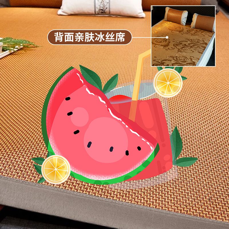 凉席竹席双面可折叠双人1.5m冰丝席1.8米2米宿舍学生单人床草席子_5 宽100cmX长190cm(直筒款) 印花精品席(送冰丝枕套)