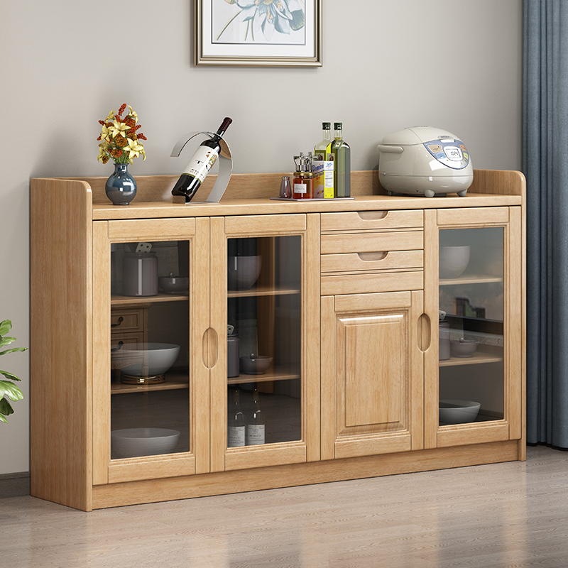 青木川 实木餐边柜酒柜一体靠墙餐厅客厅家用小户型多功能微波炉碗柜橱柜收纳储物柜立柜矮柜带玻璃门茶水柜置物架 榉木色【122x42x86.5cm】