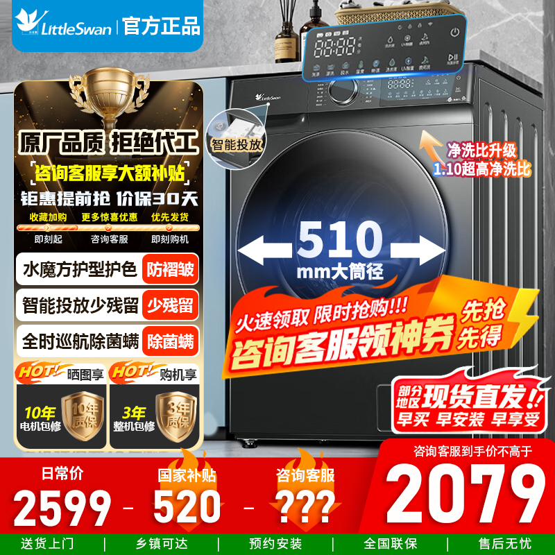 房子还没装好了乘这个国补末尾赶紧**买了这款理想中的洗烘一体机。