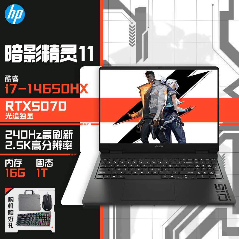 [国补]惠普暗影精灵11游戏电竞笔记本电脑 [16-am0001TX]酷睿i7-14650HX 16G+1T RTX5070 240Hz 2.5K 黑