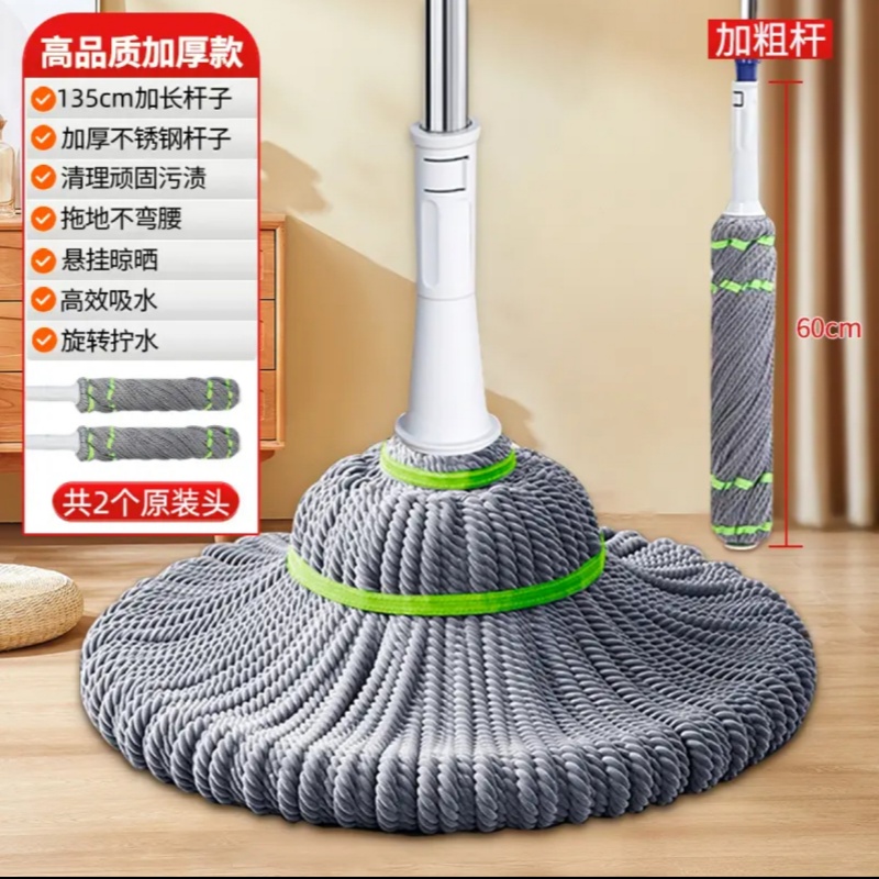 免手洗自拧水新款旋转拖把家用免洗一拖净大墩布吸水干湿两用拖把 拖把1套加长加粗不锈钢135cm杆子+2个50cm拖头