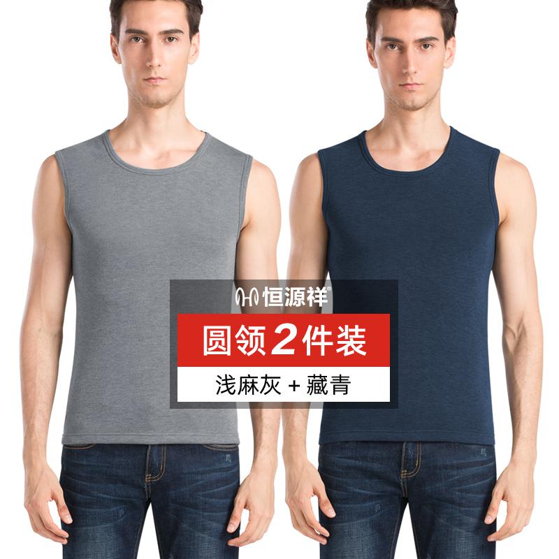 恒源祥男士德绒保暖背心加绒加厚无痕打底棉马甲内穿上衣秋冬季_867_927 175/XL 【圆领】浅灰+藏青