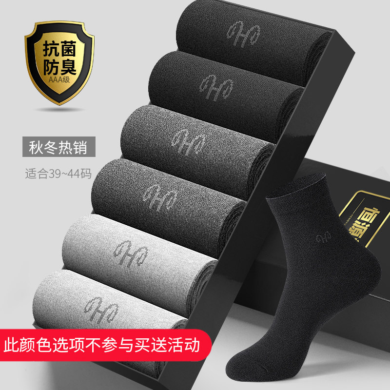 恒源祥袜子男士纯棉中筒秋冬季加厚款防臭吸汗长筒长袜运动全棉袜_435 均码【纯棉袜收藏加购|闪电发货】 纯棉抗菌四季款【2深灰/2浅灰/2黑色】共6双