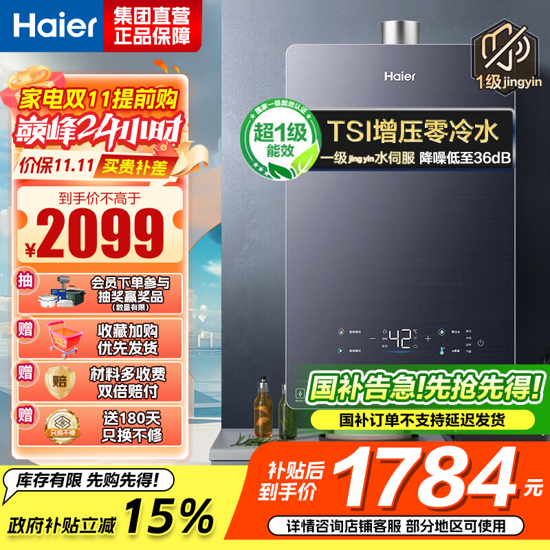 这个国补很给力,商家给了很大优惠,海尔大品牌希望能用的长久点
