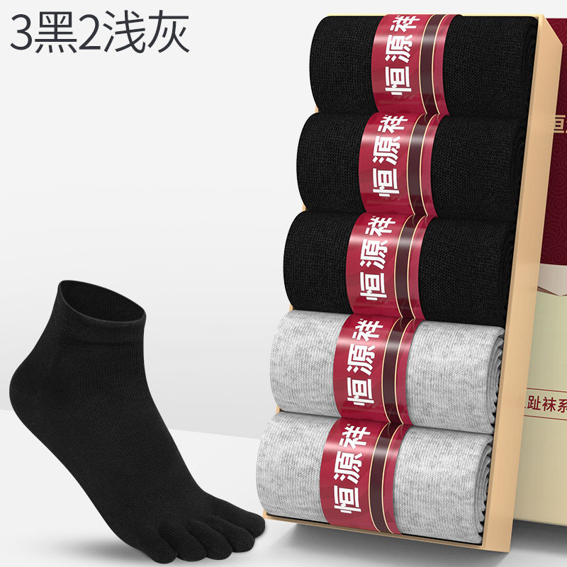 恒源祥五指袜男士纯棉短筒棉吸汗春夏季薄款脚趾五趾袜子男_117 100%纯棉五趾短筒袜(38-44) 3黑2浅灰