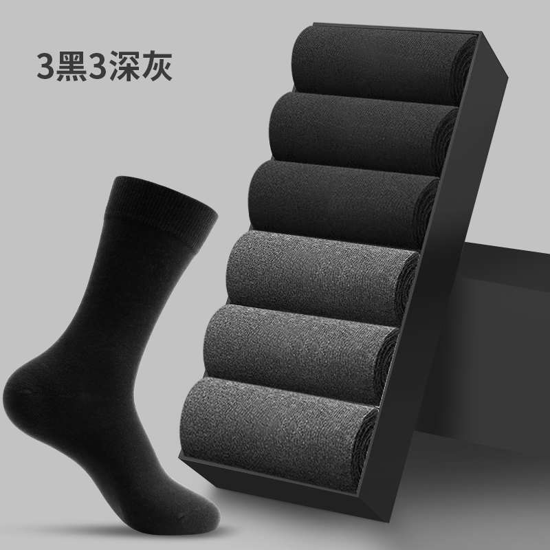 恒源祥袜子男士秋冬季黑色商务长筒高筒纯棉防臭中筒春夏全棉男袜 高筒均码(38-44码) 四季款-3黑3深灰