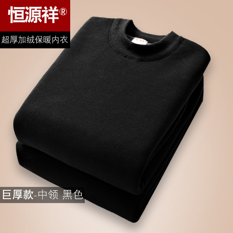 恒源祥保暖内衣男士超厚双层加绒加厚中高领中老年套装纯棉秋冬季_538_212 L=170/95 巨厚女士中领黑色