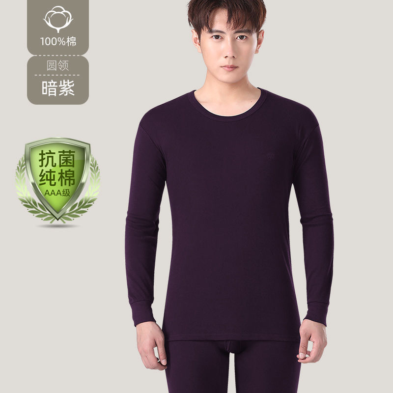 恒源祥保暖内衣女士纯棉毛衫薄款棉打底衫秋衣秋男裤套装秋冬季_796_92 165/M 【圆领男款】暗紫
