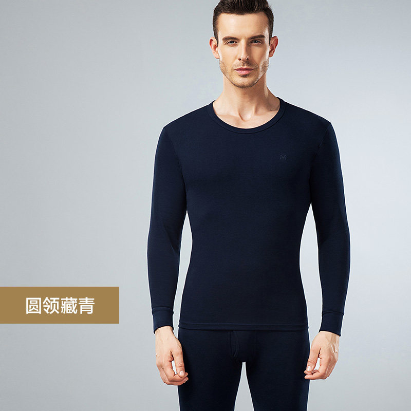 恒源祥男士保暖内衣秋冬棉修身圆领打底套装棉毛衫纯棉秋衣秋裤_112 185(XXXL) 圆领藏青