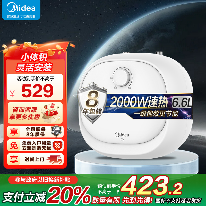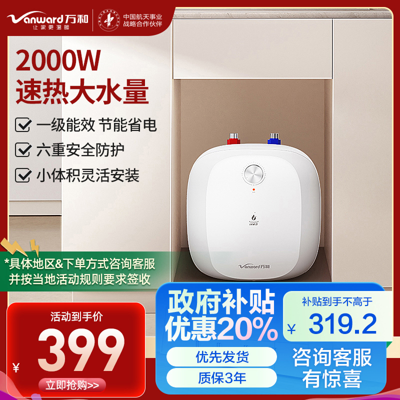 漂亮的小厨宝放在洗菜盆下正好国补后便宜还有八年包修合适