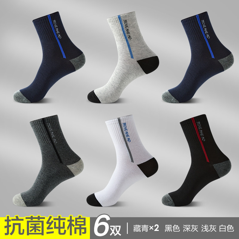 恒源祥袜子男中筒袜纯棉防臭吸汗秋季全棉篮球运动跑步长袜春秋款_845 均码【39-44码】运动防滑100%纯棉 【纯棉抗菌中筒款】2藏青/黑色/深灰/浅灰/白色