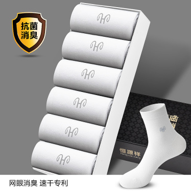 恒源祥袜子男士纯棉中筒袜春秋全棉秋冬季防臭黑色吸汗抗菌长袜潮 6双四季透气纯棉抗菌6白色 均码纯棉消臭闪电发货