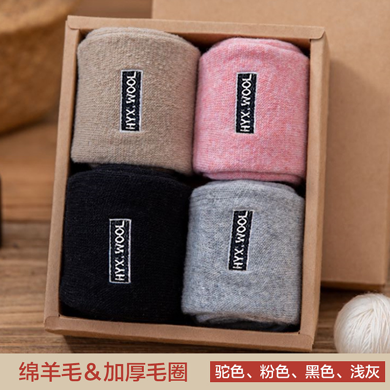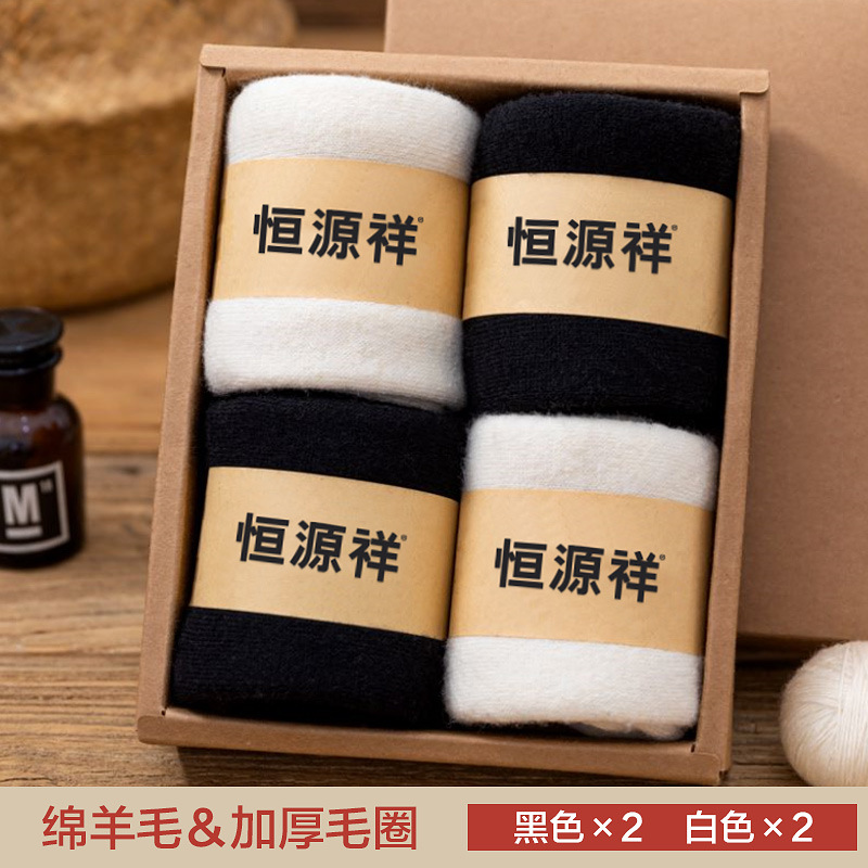 恒源祥袜子女士加厚羊毛袜中筒加绒毛圈袜毛巾长袜防寒保暖袜冬季_570 均码【加厚保暖】 2白色+2黑色