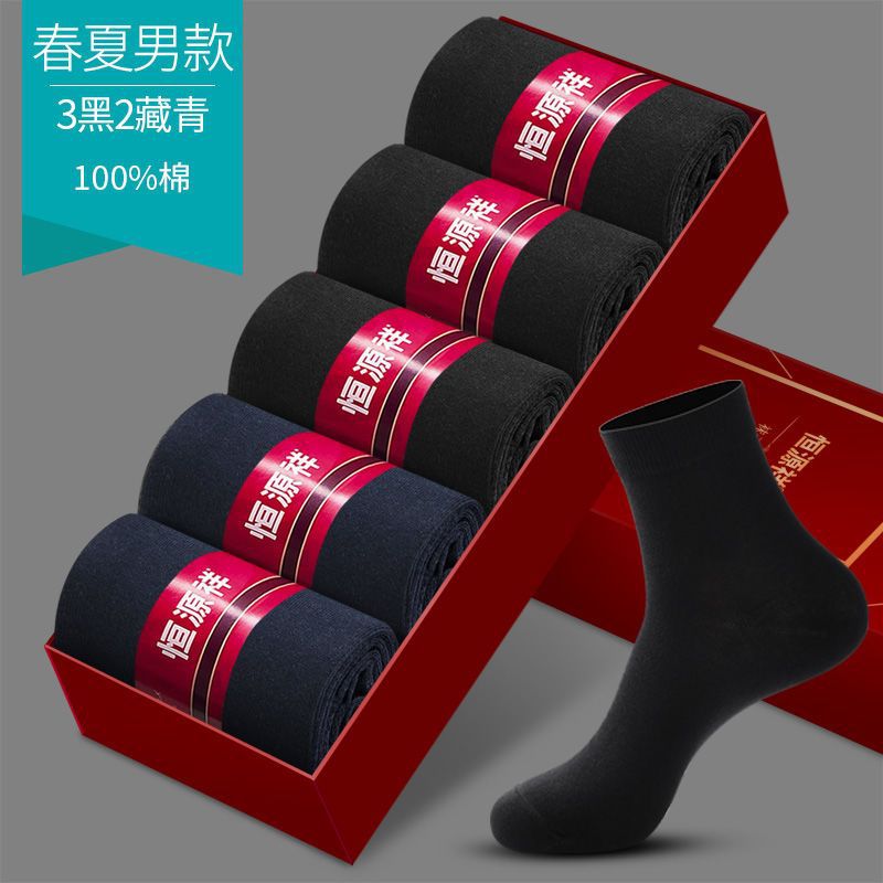 恒源祥袜子男纯棉中筒黑色四季透气吸汗商务棉秋冬厚款男袜_377 100%棉中筒袜 男士薄款-3黑2藏青