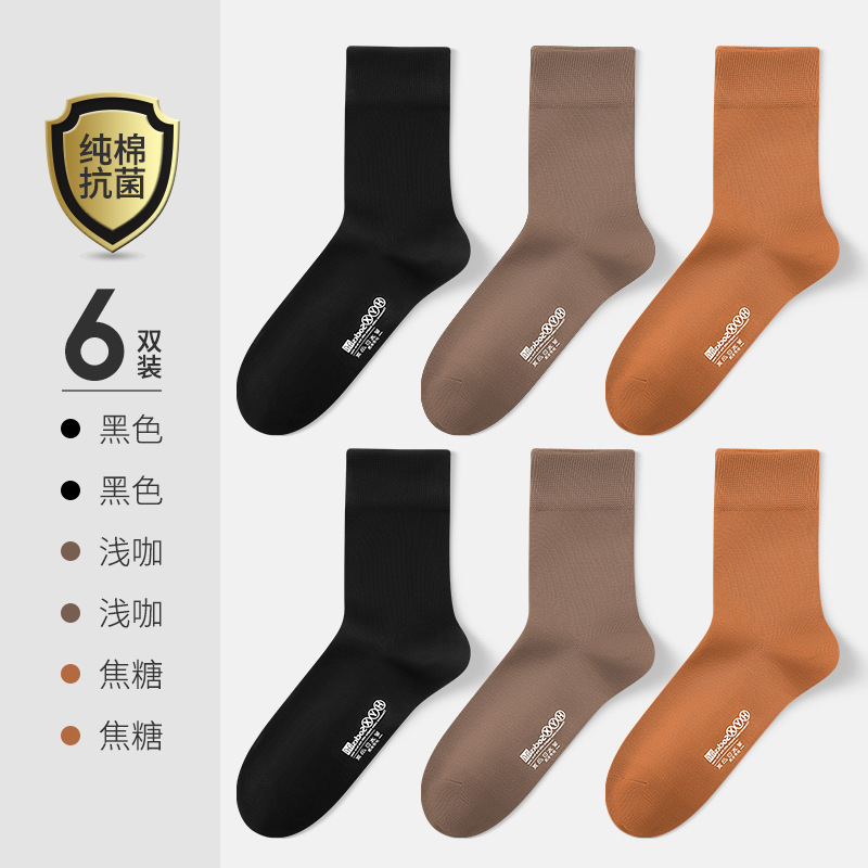 恒源祥纯棉男士袜子中筒男生黑色吸汗透气棉袜春秋长袜_939 均码【纯棉抗菌防臭】 【高筒加厚款】2白色2杏色2咖色