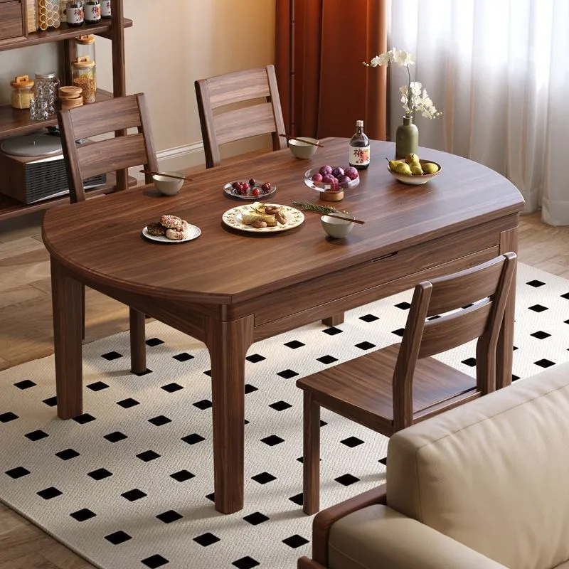 青木川 简约现代南美黑胡桃木餐桌椅组合四人六人6人客厅餐厅家用小户型方圆可变圆桌多功能圆形吃饭桌子跳台 1.35米长餐桌+四椅 黑胡桃色