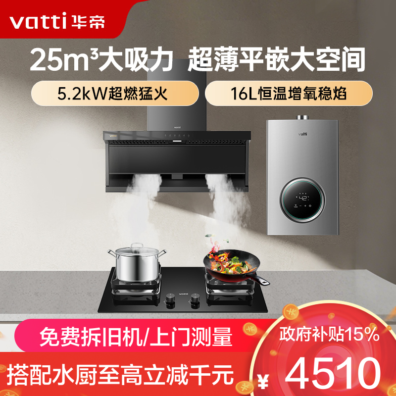 华帝(vatti) 顶侧双吸家用吸油烟机K7套装 齐平橱柜 25风量大吸力抽油烟机一级能效11237+105+12103