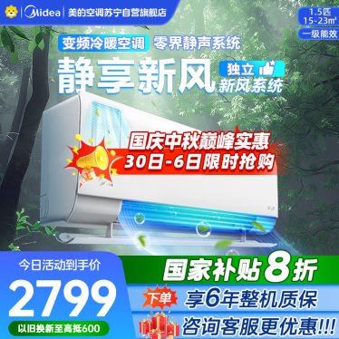 美的(Midea)空调挂机静新风大1匹p新一级能效变频冷暖壁挂式家用智能除湿节能省电KFR-26GW/N8XF1-1