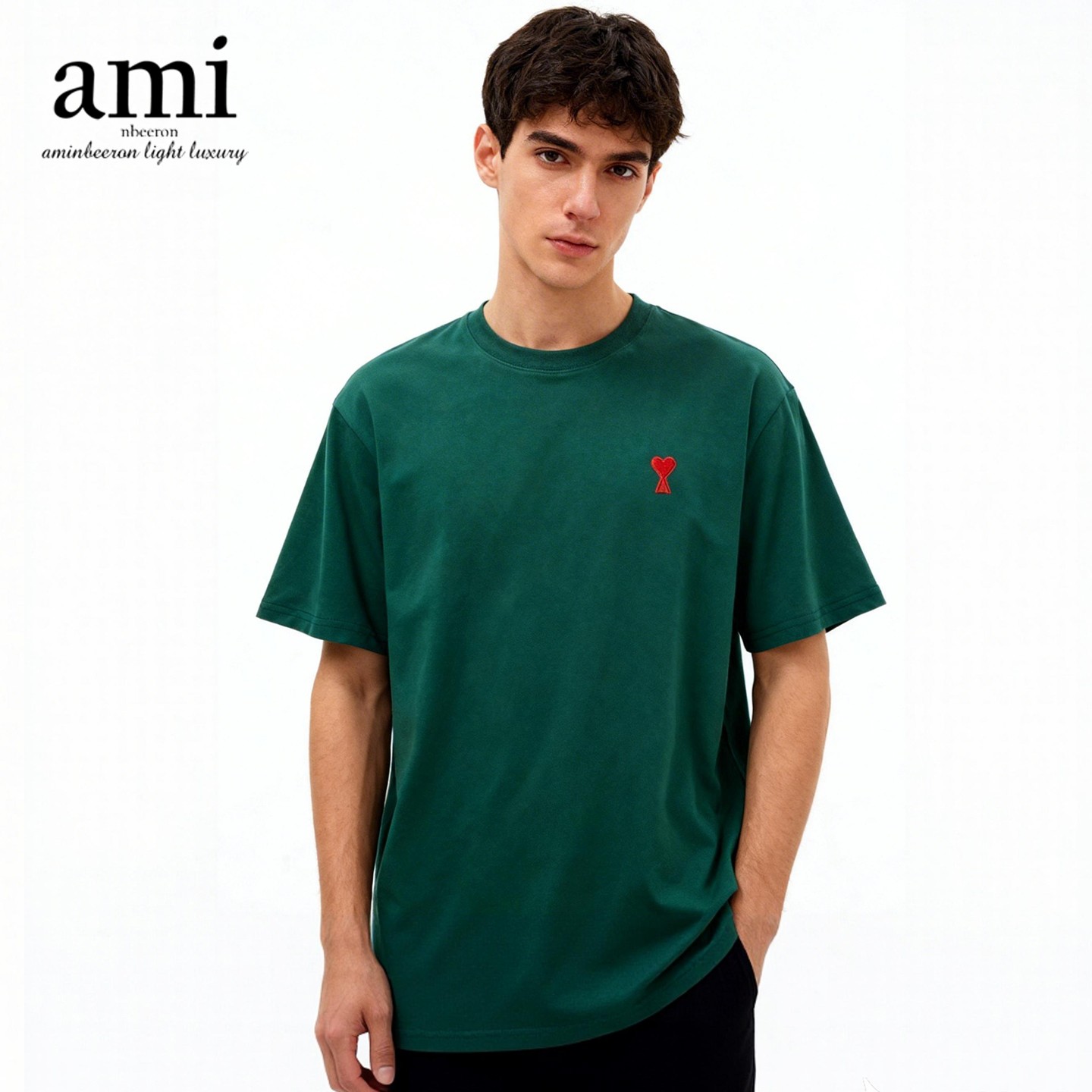 ami nbeeron纯棉短袖t恤重磅新疆棉圆领打底衫男女百搭休闲轻奢T M 丛林绿