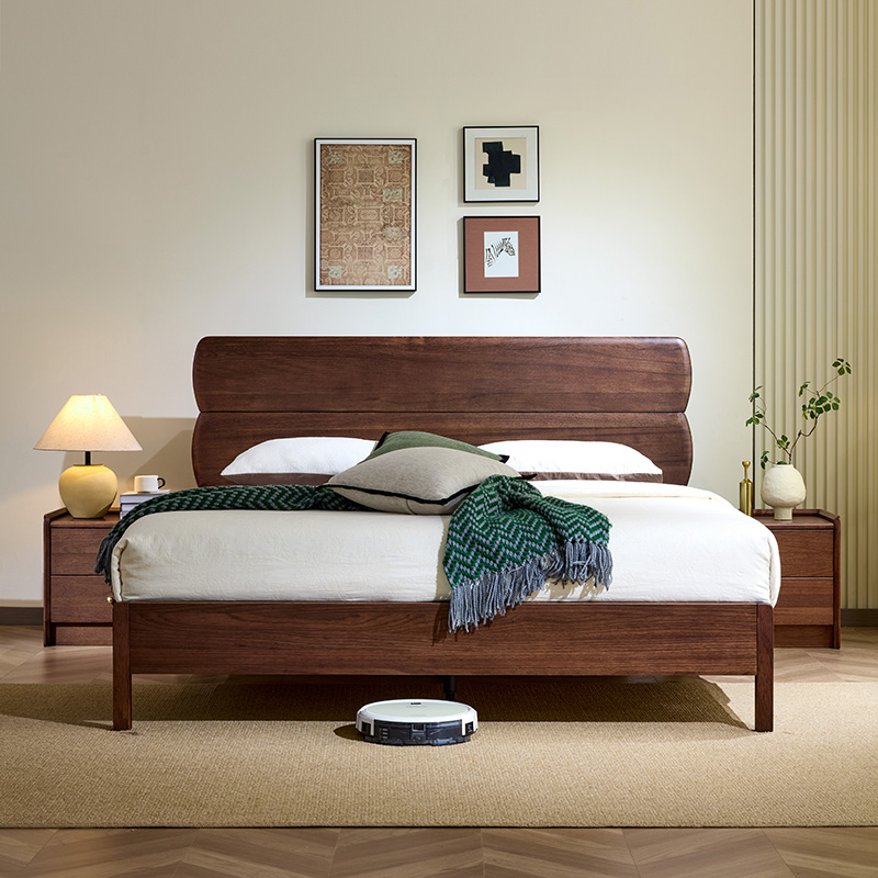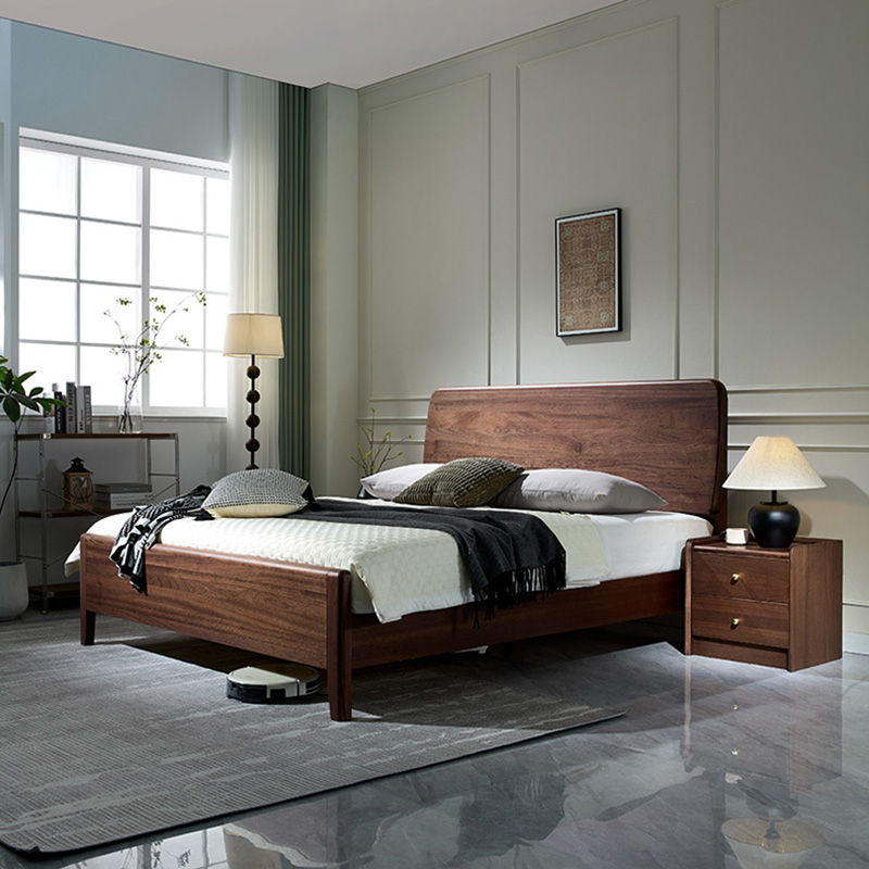 青木川 简约现代中式胡桃木实木床1.8米双人床1.5米x2m主卧室房间小户型家用休闲成人结婚榫卯床架床铺 框架床 1.8*2米