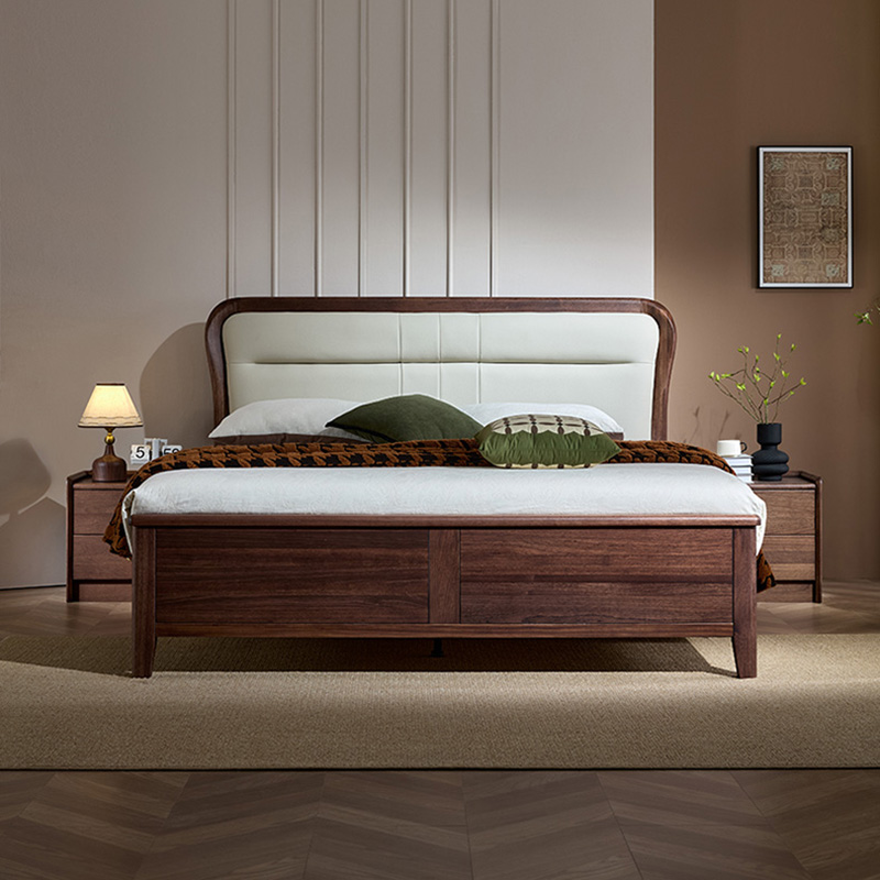 青木川 简约现代南美黑胡桃木全实木床1.8米双人床1.5米两米单人床大板直拼卧室家具带软包家用休闲成人结婚榫卯床架 框架床+床垫+2个床头柜 1.5*2米