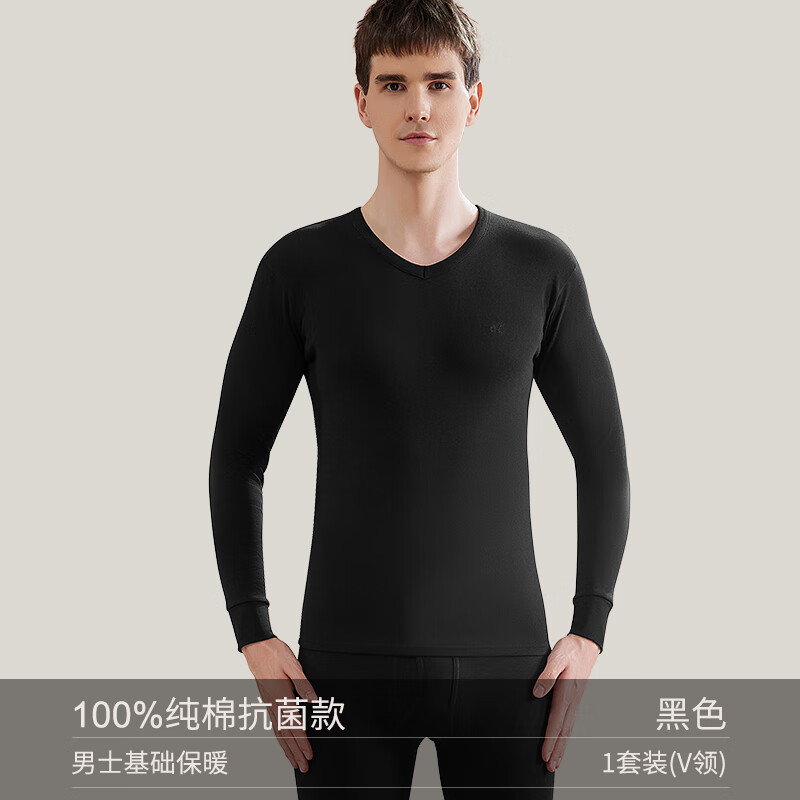 恒源祥保暖内衣男士德绒秋衣秋裤套装男加绒加厚无痕冬季线衣线裤_1_49_436 是x170(L) 精梳棉【V领】黑色
