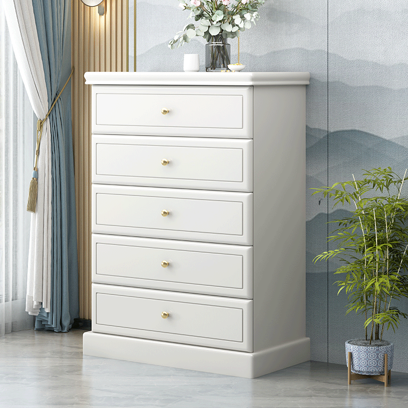 青木川 简约现代实木五斗柜卧室客厅书房家用靠墙收纳储物柜小户型立柜矮柜门厅柜玄关柜多抽屉式落地四斗橱杂物柜 五斗【70x40x100cm】白色