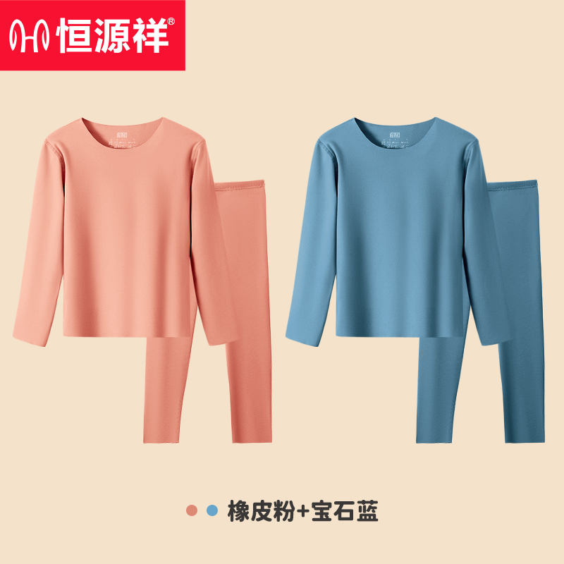 恒源祥薄款保暖内衣女士无痕轻薄紧身打底内穿秋衣秋裤套装秋冬季_71_844 170/95 2套-【双面磨毛】高级灰+秋叶黄