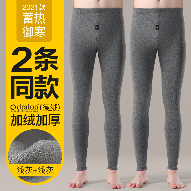 恒源祥男士加绒加厚保暖衬裤德绒大码毛裤春秋打底棉裤绒裤冬季潮 175/XL是 【德绒加厚】浅麻灰+浅麻灰