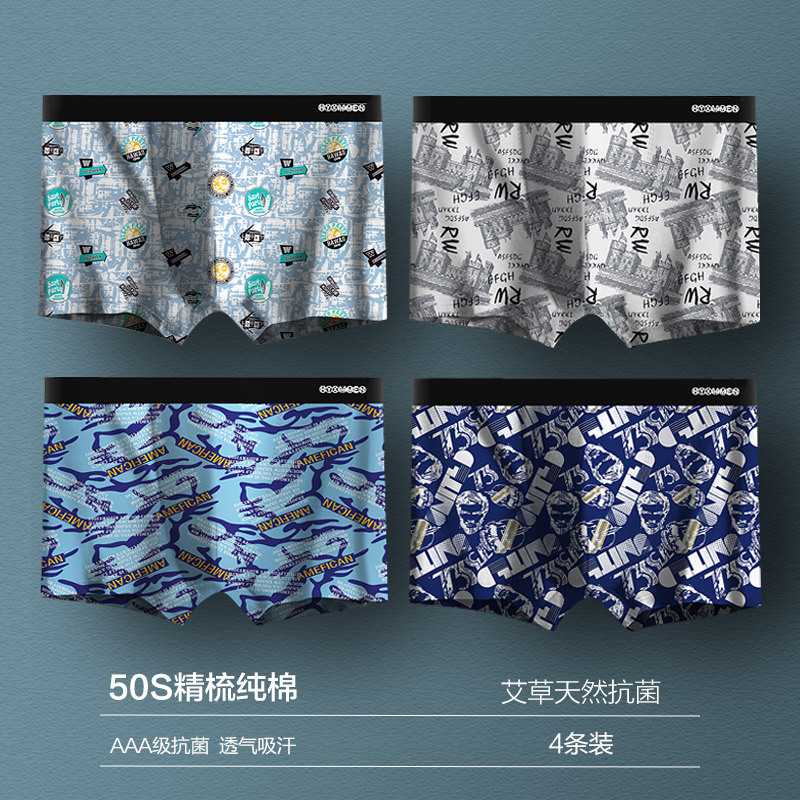 恒源祥男士内裤男纯棉平角裤透气宽松薄款青年男生四角短裤头_541 170/L【推荐90-120斤】 【AAA抗菌1090B】浅蓝+浅灰+宝蓝+深蓝