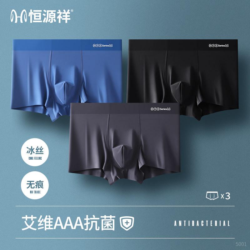 恒源祥男士平角内裤男无痕冰丝透气四角裤男生潮流短裤头夏季_981 XXL 【无痕冰丝AAA级抗菌】黑色+深灰+蝴蝶兰