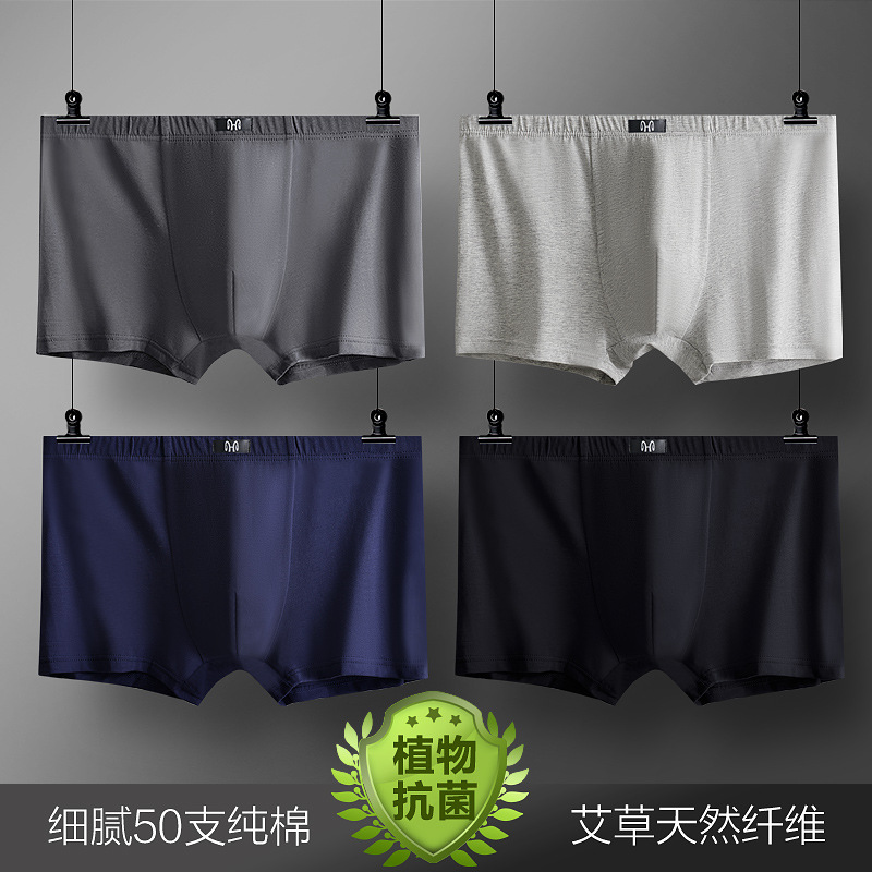 恒源祥男士纯棉内裤男石墨烯四角裤衩男生大码宽松平角短裤头_103 170/L 4772【纯棉抗菌】黑色/藏青/深灰/浅灰