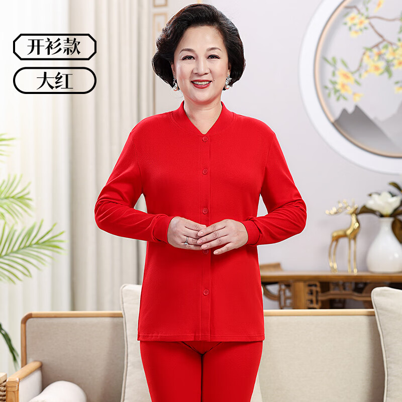 恒源祥女士纯棉保暖内衣中老年人冬季秋衣裤秋裤套装妈妈棉毛衫_408 180/2XL【纯棉3A级】 大红
